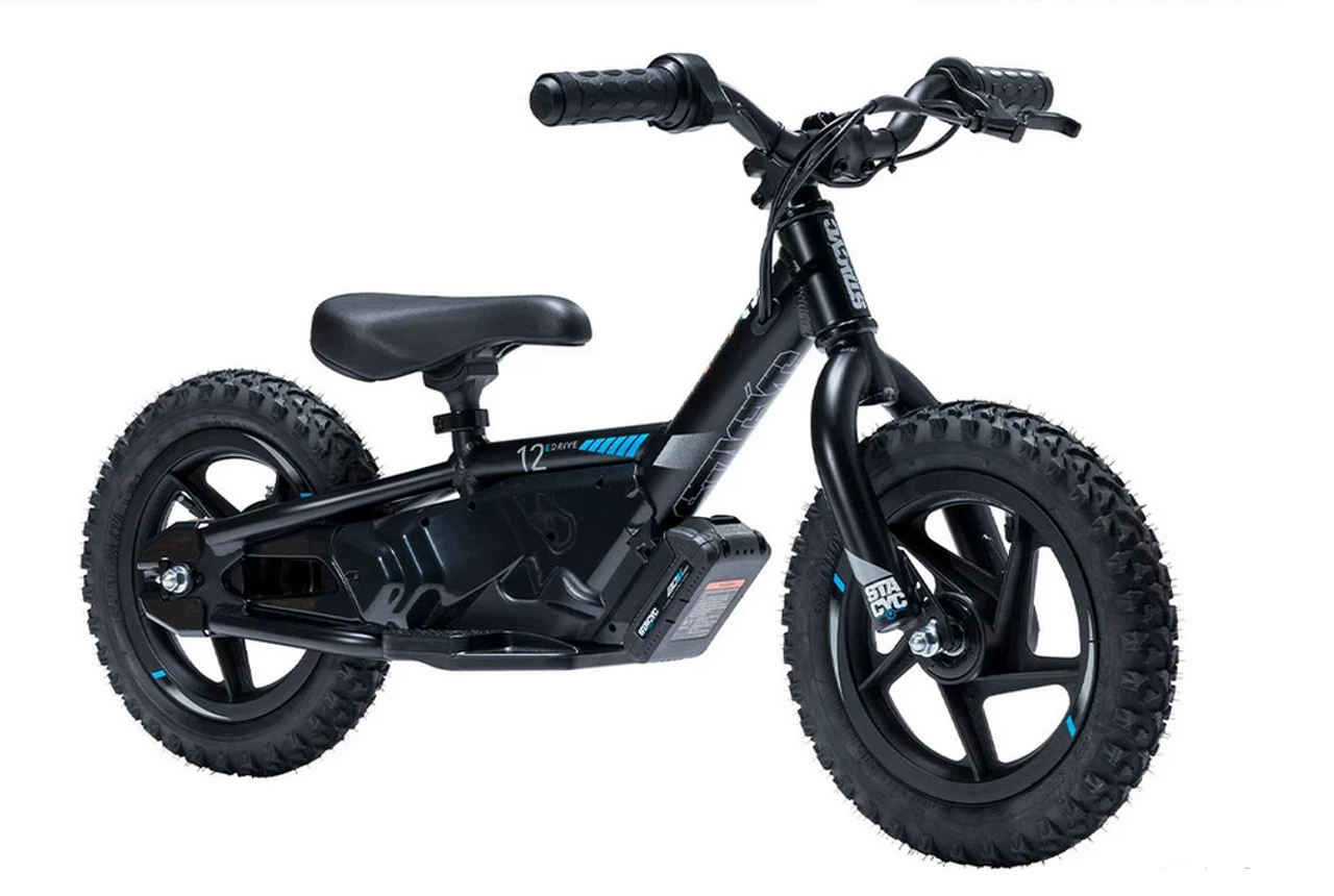 Perfect for 3-5 year old rippers under 75 lbs, with 14-20″ inseam. 12″ composite wheels with pneumatic tires Seat Height: 13″ Weight: 17 lbs. with battery. Frame: aluminum tig welded. Fork: steel, BMX style. Proprietary Drive System Power Selection Modes: Low / Training Mode ~ 5 MPH, Med / Transitional Mode ~ 7 MPH, High / Advanced Mode ~ 9 MPH. Industrial Grade Lithium-Ion Battery and Charger. Quick disconnect / connect battery. 20Vmax voltage (18Vnom) 2Ah. 30 – 60 min. run time, 30 – 60 min. charge time. Stacyc vs. Bicycle: Ability to learn bike handling skills confidently without having to pedal at the same time will accelerate a young rider’s confidence. Ability to reach the ground comfortably allows riders to learn without training wheels. Extend ride time by increasing fun factor. Kids 3-5 are typically willing to ride further than on a traditional pedal bike. Similar weight to kids BMX bikes.