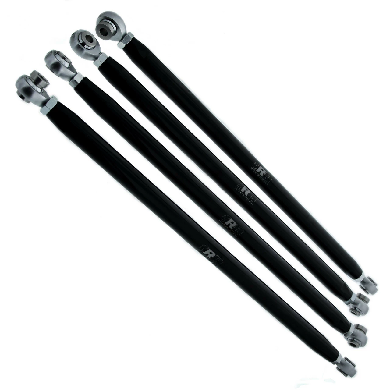 All NEW Race-Driven Black 1.125” Diameter 6061 Billet Aluminum Radius Rods with 4130 Chromoly rod ends that are heat treated for maximum strength that have self-lubricating and self sealing Nylafiber matrix race. You will receive 4 rods that will fit: 2017 2018 2019 2020 2021 Polaris RZR XP Turbo. We manufacture the high-quality stainless-steel spacers to very tight tolerances for the best fit. These will outlast the weak aluminum spacers other companies use. These Rods have been quality powder coated by us in house, so custom colors are available upon request (extra charge for custom colors). These Rods are designed to withstand anything you can throw at them and are made to last. Designed to perfectly fit and replace the thin and weak OEM stock Rods. Must use stock mounting hardware. Proudly made in the USA in Escanaba Michigan with a lifetime limited warranty* on non-wearable parts. *Not valid on machines with tires over 32″. May not work with some bumpers.