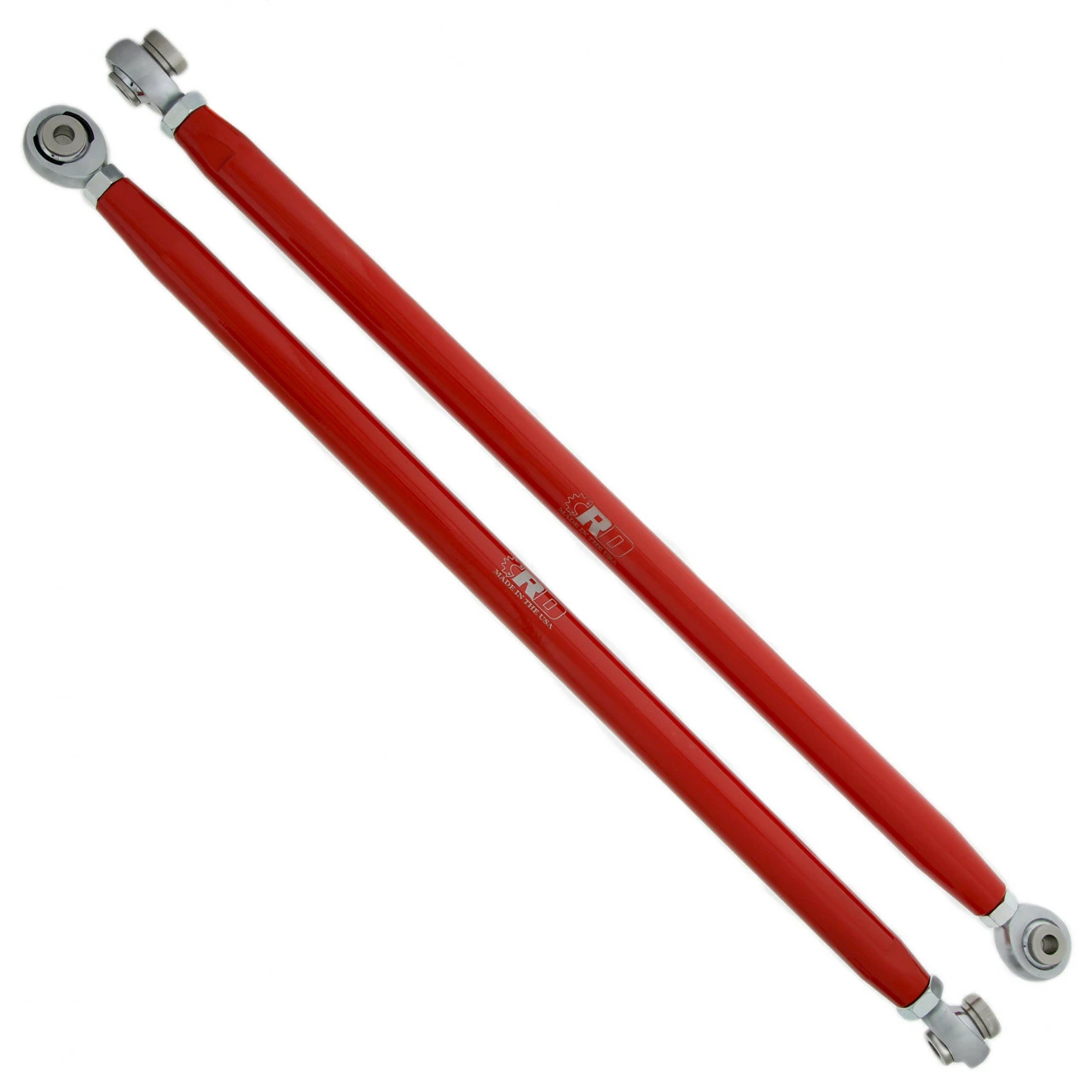 All NEW Race-Driven Red 1.125” Diameter 6061 Billet Aluminum Radius Rods with 4130 Chromoly rod ends that are heat treated for maximum strength that have self-lubricating and self sealing Nylafiber matrix race. You will receive 2 lower rods that will fit: 2011-2014 Polaris RZR XP 900 /900-4. We manufacture the high-quality stainless-steel spacers to very tight tolerances for the best fit. These will outlast the weak aluminum spacers other companies use. These Rods have been quality powder coated by us in house, so custom colors are available upon request (extra charge for custom colors). These Rods are designed to withstand anything you can throw at them and are made to last. Designed to perfectly fit and replace the thin and weak OEM stock Rods. Must use stock mounting hardware. Proudly made in the USA in Escanaba Michigan with a lifetime limited warranty* on non-wearable parts. *Not valid on machines with tires over 32″. May not work with some bumpers.