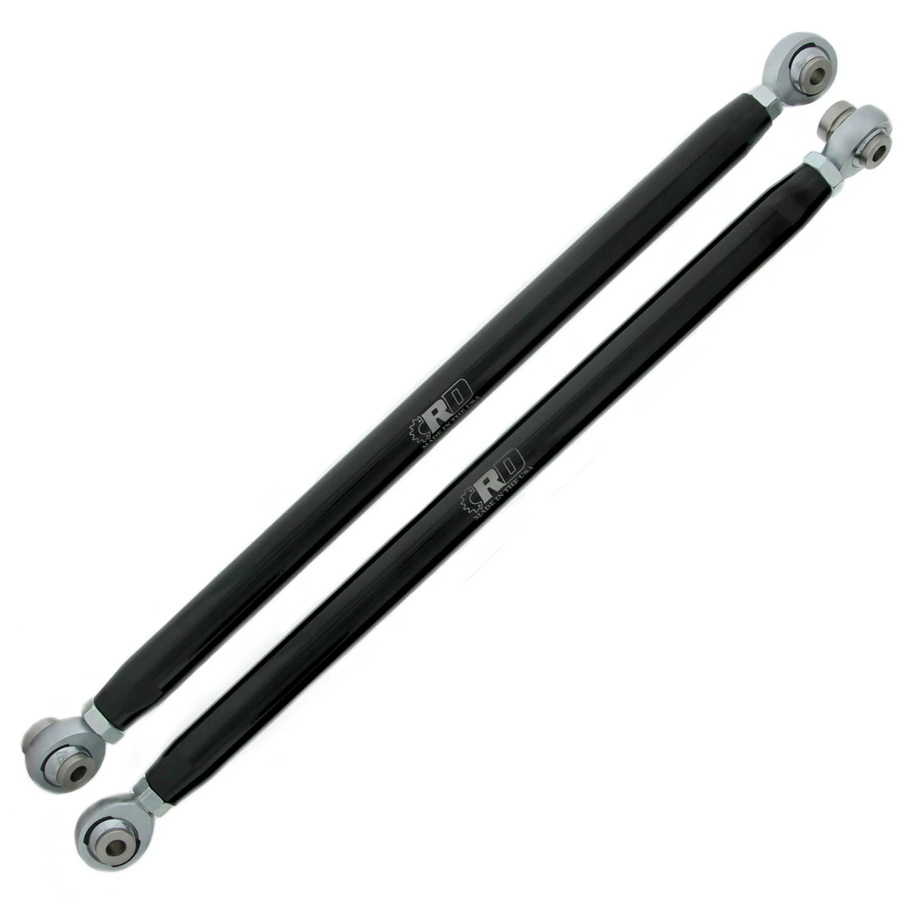 All NEW Race-Driven Black 1.125” Diameter 6061 Billet Aluminum Radius Rods with 4130 Chromoly rod ends that are heat treated for maximum strength that have self-lubricating and self sealing Nylafiber matrix race. You will receive 2 upper rods that will fit: 2011-2014 Polaris RZR XP 900/900-4. We manufacture the high-quality stainless-steel spacers to very tight tolerances for the best fit. These will outlast the weak aluminum spacers other companies use. These Rods have been quality powder coated by us in house, so custom colors are available upon request (extra charge for custom colors). These Rods are designed to withstand anything you can throw at them and are made to last. Designed to perfectly fit and replace the thin and weak OEM stock Rods. Must use stock mounting hardware. Proudly made in the USA in Escanaba Michigan with a lifetime limited warranty* on non-wearable parts. *Not valid on machines with tires over 32″. May not work with some bumpers.