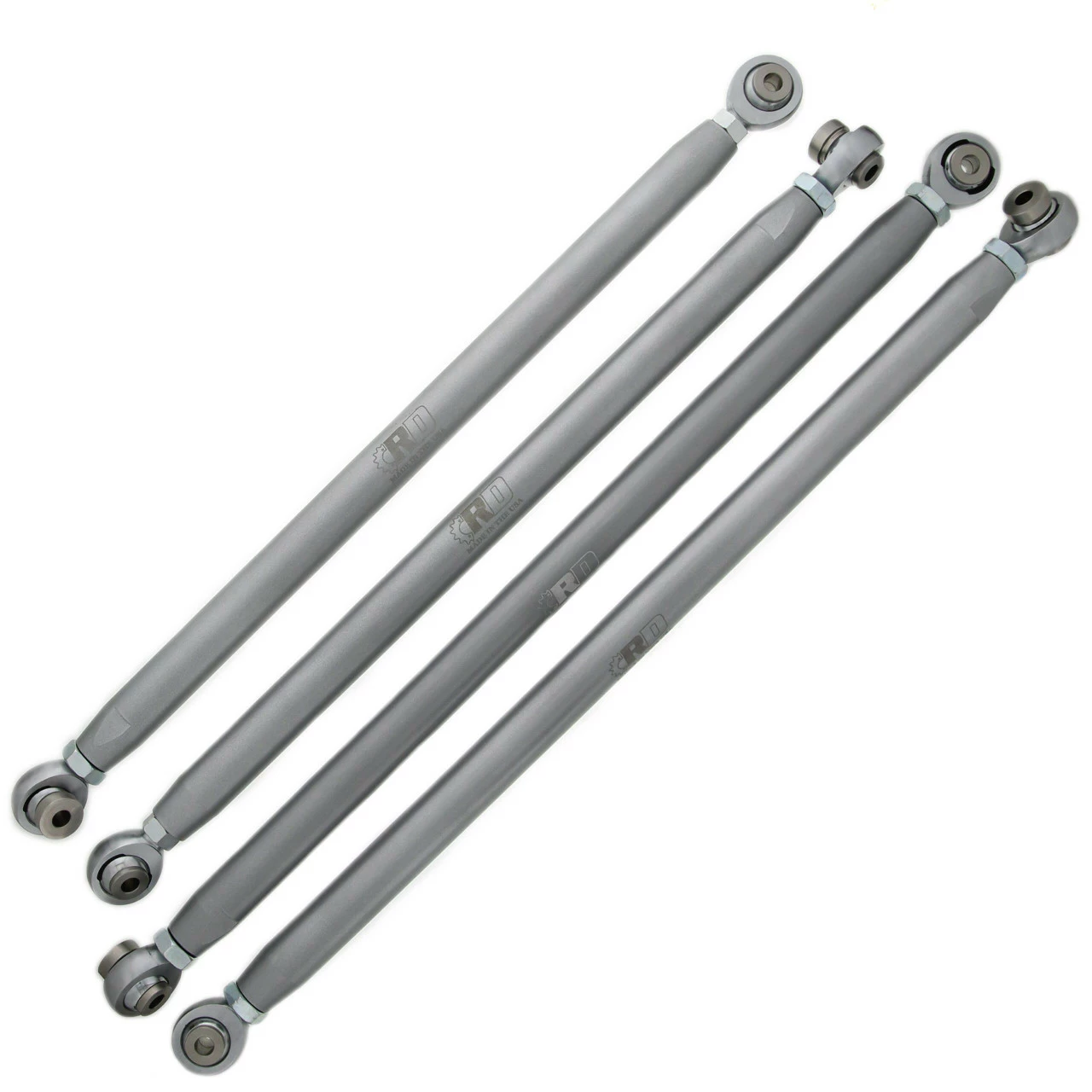 All NEW Race-Driven Silver 1.125” Diameter 6061 Billet Aluminum Radius Rods with 4130 Chromoly rod ends that are heat treated for maximum strength that have self-lubricating and self sealing Nylafiber matrix race. You will receive 2 upper and 2 lower rods that will fit: 2011-2014 Polaris RZR XP 900/900-4. We manufacture the high-quality stainless-steel spacers to very tight tolerances for the best fit. These will outlast the weak aluminum spacers other companies use. These Rods have been quality powder coated by us in house, so custom colors are available upon request (extra charge for custom colors) These Rods are designed to withstand anything you can throw at them and are made to last Designed to perfectly fit and replace the thin and weak OEM stock Rods. Must use stock mounting hardware. Proudly made in the USA in Escanaba Michigan with a lifetime limited warranty* on non-wearable parts. *Not valid on machines with tires over 32″. May not work with some bumpers.