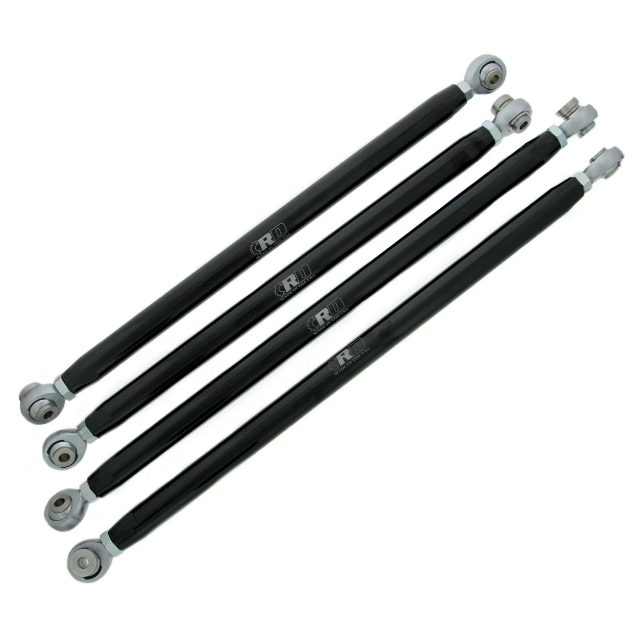 All NEW Race-Driven Black 1.125” Diameter 6061 Billet Aluminum Radius Rods with 4130 Chromoly rod ends that are heat treated for maximum strength that have self-lubricating and self sealing Nylafiber matrix race. You will receive 2 upper and 2 lower rods that will fit: 2011-2014 Polaris RZR XP 900/900-4. We manufacture the high-quality stainless-steel spacers to very tight tolerances for the best fit. These will outlast the weak aluminum spacers other companies use. These Rods have been quality powder coated by us in house, so custom colors are available upon request (extra charge for custom colors) These Rods are designed to withstand anything you can throw at them and are made to last. Designed to perfectly fit and replace the thin and weak OEM stock Rods. Must use stock mounting hardware. Proudly made in the USA in Escanaba Michigan with a lifetime limited warranty* on non-wearable parts. *Not valid on machines with tires over 32″. May not work with some bumpers.