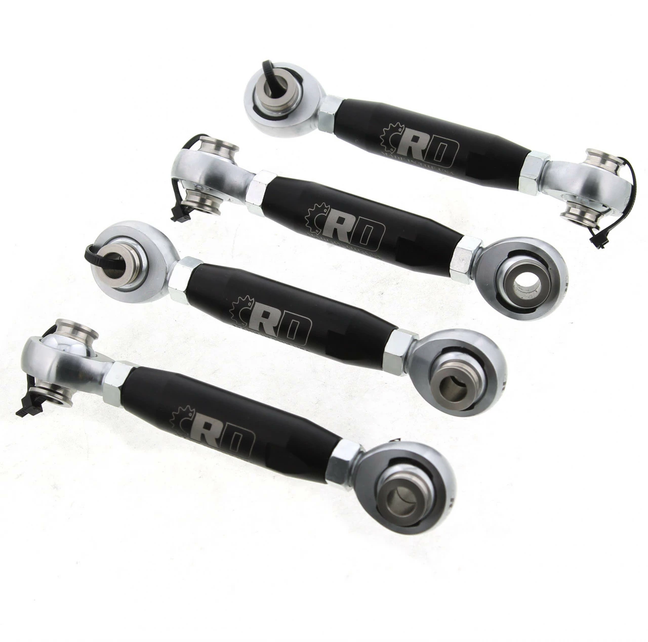 All New 6061 Billet Aluminum Front and Rear Adjustable Sway Bar Links with 4130 Chromoly rod ends that are heat treated for maximum strength that have self-lubricating and self sealing Nylafiber matrix race. You will receive 4 links that will fit: 2018 2019 2020 2021 Polaris RZR XP Turbo S. We manufacture the high-quality stainless-steel high misalignment spacers to very tight tolerances for the best fit. These will outlast the weak aluminum spacers other companies use.These links have been quality powder coated by us in house, so custom colors are available upon request. (There is an extra charge for custom colors) These links are designed to withstand anything you can throw at them and are made to last. We use these on our race UTV’s in off-road racing. Designed to perfectly fit and replace the thin and weak OEM stock links. Must use stock lock nuts and mounting bolts. Proudly made in the USA in Escanaba Michigan with a lifetime warranty on non-wearable parts.